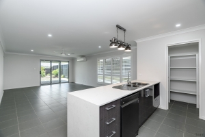 • Kitchen – 900mm cooking, dishwasher, plumbing for fridge, and a walk-in butler’s pantry & modern stone benchtops