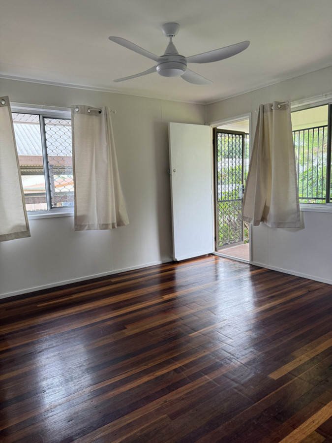 * Master bedroom with ceiling fan and closed in verandah