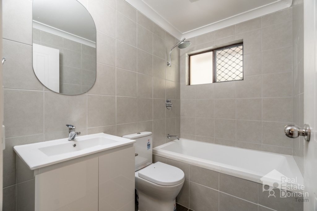 – Newly renovated bathroom with modern finishes