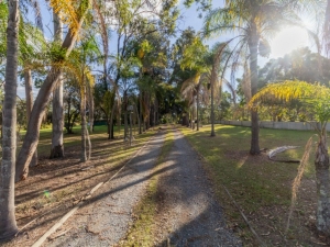 Outside it boasts everything you could ask for including security screens to doors, verticals throughout and spacious bathroom. With distance and privacy from the road the driveway will lead the way through landscaped palms to the solid homesite and triple car accommodation.
