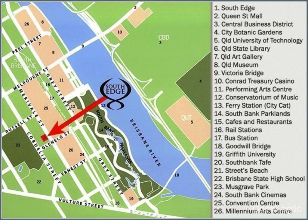 * Walk-to-everything location — South Bank, Fish Lane, QPAC, dining, bars, and more